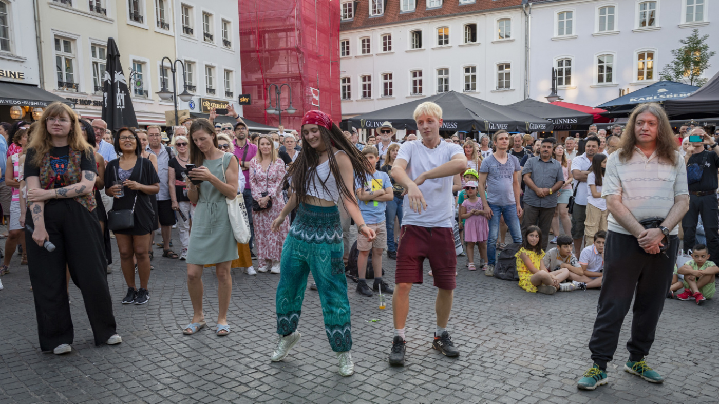 Das Treffen ist vor der Haupt·bühne am Tblisser Platz.