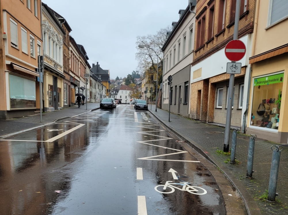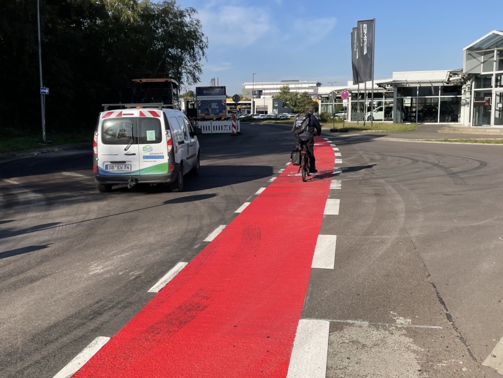 An den Stellen Mainzer Straße / Zufahrt Hornbach, Lebacher Straße / Rheinstraße und Breite Straße / Paul-Schmook-Straße wurden 2023 im Vorfeld der Kreuzung Radverkehr und Kfz-Verkehr zusammengeführt.
