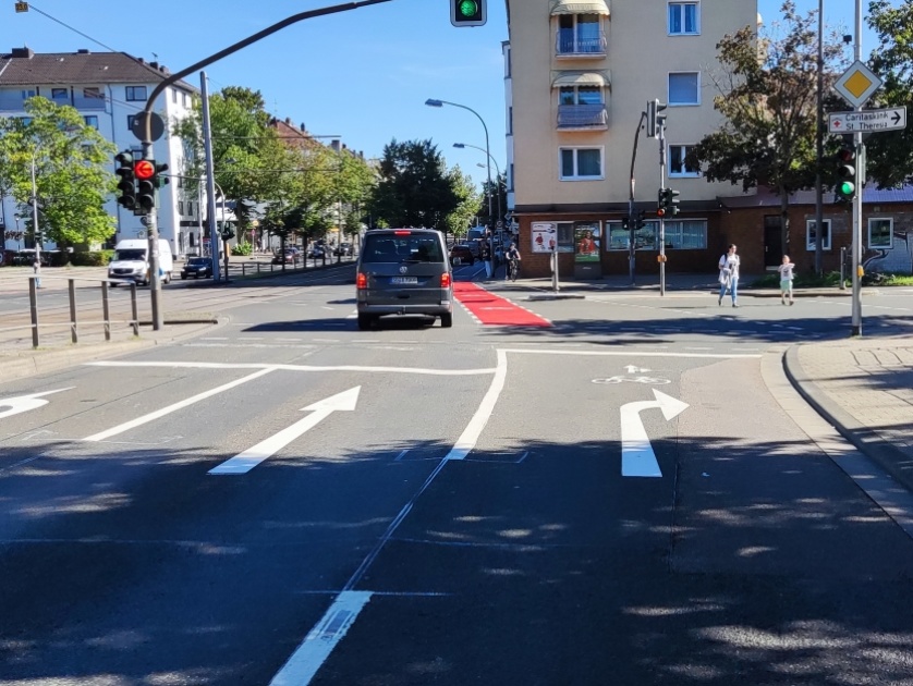 Geradeausfahrender Radverkehr auf Rechtsabbiegefahrstreifen