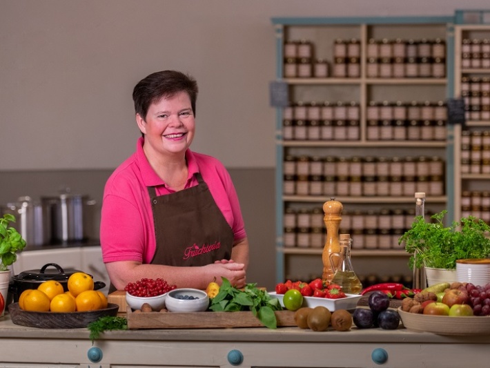 Im Deutsch Französischen Café gibt es fertige Backmischungen im Glas oder frische Zimtwaffeln und Bratapfel-Konfitüre mit Rum aus eigener Herstellung.