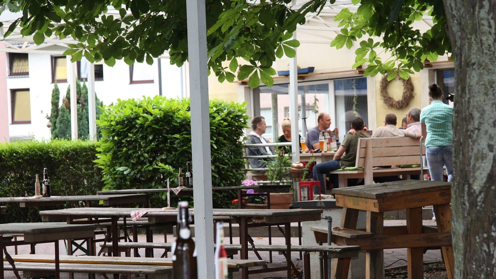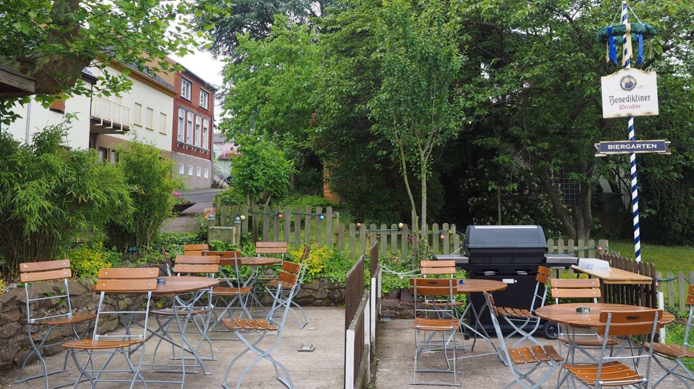 Tous les jours à partir de 17 heures, vous pourrez trinquer pour fêter la fin de votre journée de travail dans le biergarten du « Altes Haus » à Sankt-Arnual. Ce restaurant est installé dans un ancien bâtiment de ferme datant de 1850, avec de beaux volets peints en bleu et blanc.