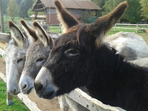 Die vier liebenswerten Esel der Saar Alpaka Farm freuen sich auf eselbegeisterte Wanderer.