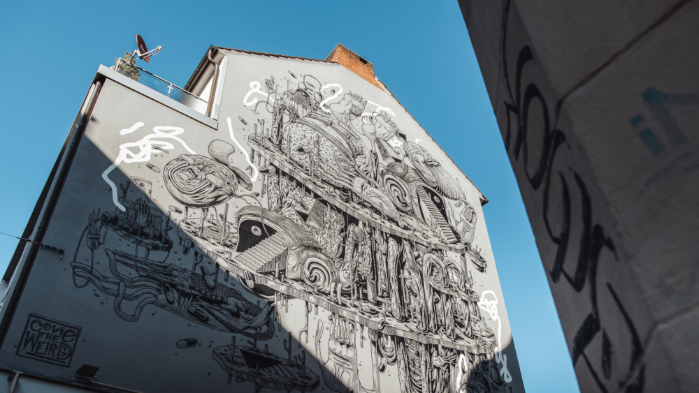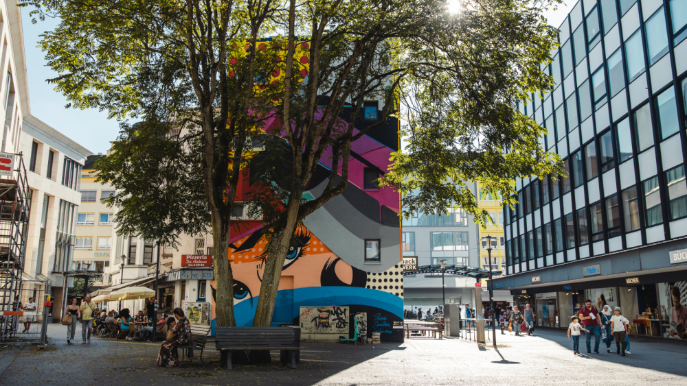 Aber auch darüber hinaus kann man in der gesamten City Freilichtkunst entdecken: Renommierte Künstler haben an Hauswänden großformatige Kunstwerke erschaffen und so die Straßen in Freilichtmuseen verwandelt.